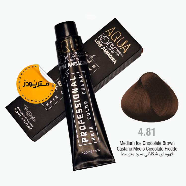 رنگ مو حرفه ای آکوا رکس - 120 میل - 4/81 قهوه ای شکلاتی سرد متوسط