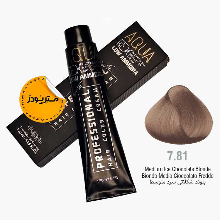 رنگ مو حرفه ای آکوا رکس - 120 میل - 7/81 بلوند شکلاتی سرد متوسط