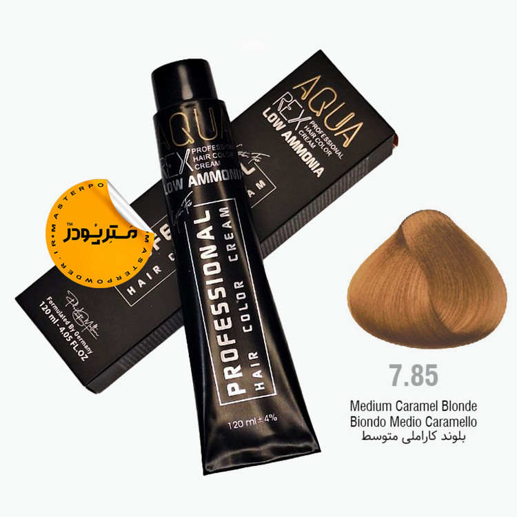 رنگ مو حرفه ای آکوا رکس - 120 میل - 7/85 بلوند کاراملی متوسط
