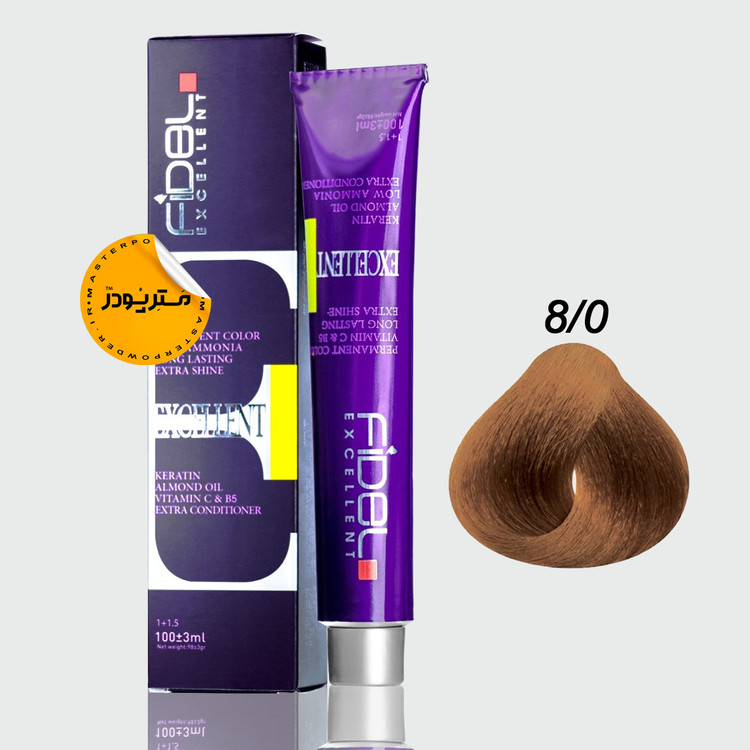رنگ موی fidel فرموله شده در آلمان، حاوی کراتین و ویتامین C و B5 می باشد.