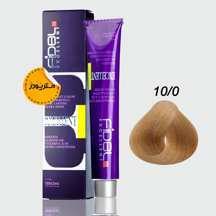 رنگ موی fidel فرموله شده در آلمان، حاوی کراتین و ویتامین C و B5 می باشد.