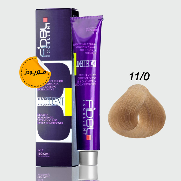 رنگ موی fidel فرموله شده در آلمان، حاوی کراتین و ویتامین C و B5 می باشد.