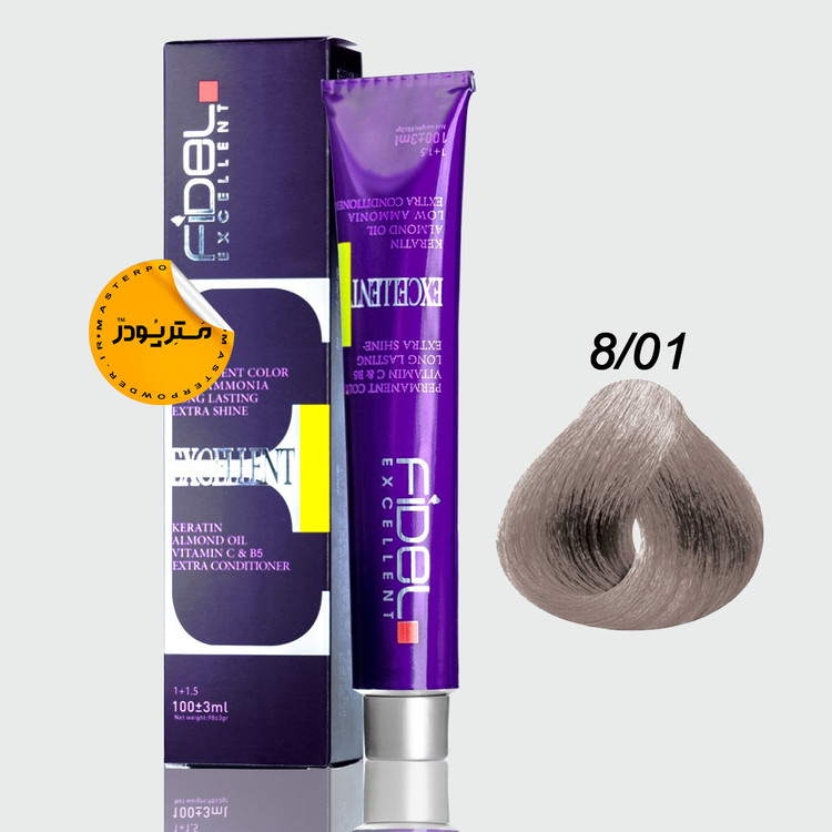 رنگ موی fidel فرموله شده در آلمان، حاوی کراتین و ویتامین C و B5 می باشد.
