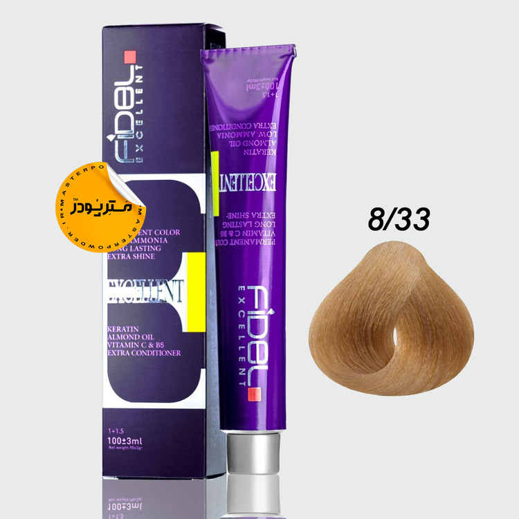 رنگ مو فیدل سری طلایی شماره 8/33 بلوند طلایی روشن قوی متوسط حجم 100 میل