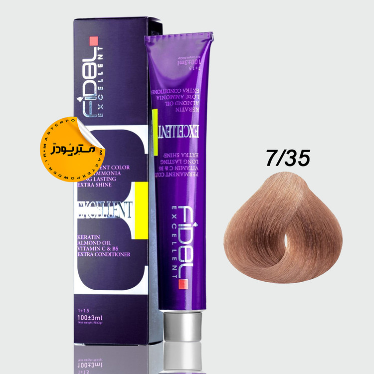 رنگ موی fidel فرموله شده در آلمان، حاوی کراتین و ویتامین C و B5 می باشد.