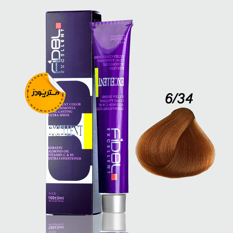 رنگ موی fidel فرموله شده در آلمان، حاوی کراتین و ویتامین C و B5 می باشد.
